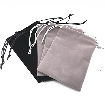 6pcs 7 X 5 Velvet Cloth Jewelry Pouches Drawstring Bags Black And Gray