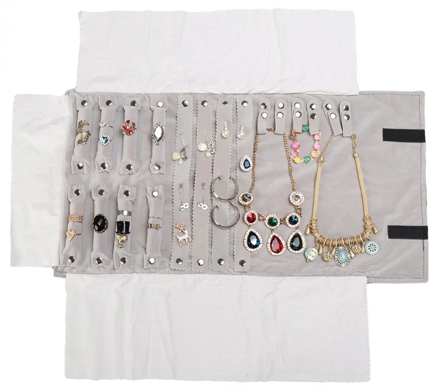 Soft Touching Roll Up Jewelry Organizer Travel Jewelry