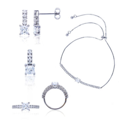 Sterling Silver Princess Cut Cubic Zirconia 4 Pc Jewelry Set