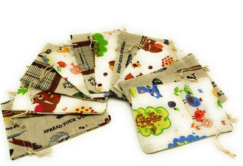 Satyam Kraft Drawstring Jute Storage Linen Jewelry Pouches