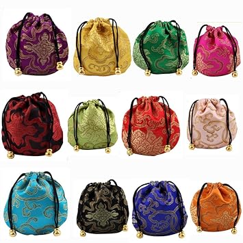Amazon Com Mgqfy 12 Pcs Silk Brocade Jewelry Pouch Bag