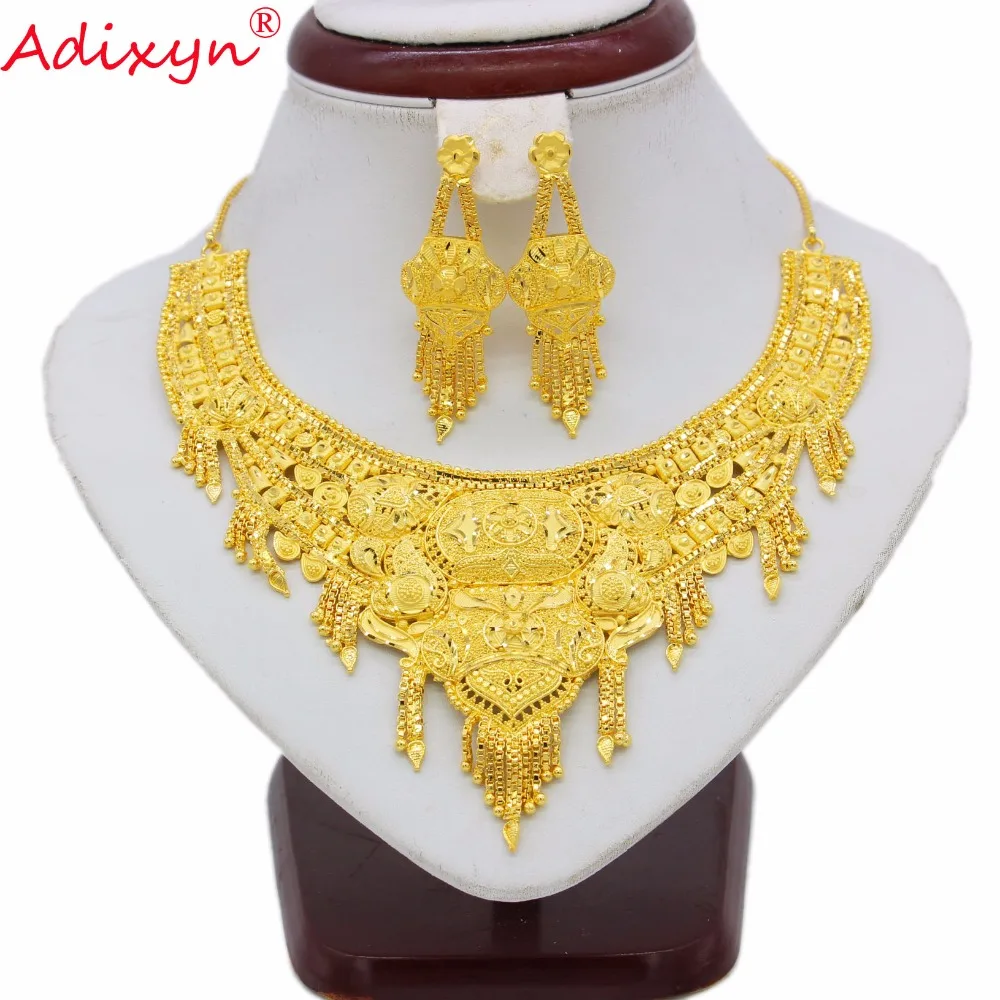 Adixyn New India Jewelry Set For Women Girls Gold Color Tassels Necklace Earrings Elegant Arab Bridal Wedding Gifts N070113