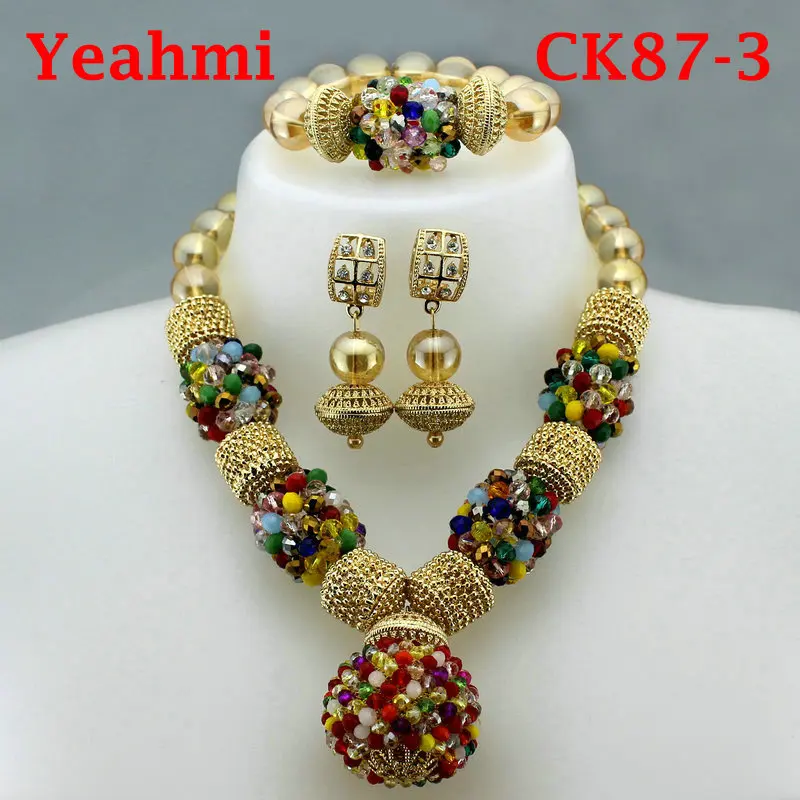New Arrival 2019 African Beads Jewelry Set Fashion Nigerian Wedding African Beads Necklaces Earrings Set Girls Womens Necklace
