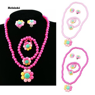 Hel Flower Artificial Pearls Kids Girls Earrings Bracelet Necklace Ring Jewelry Set