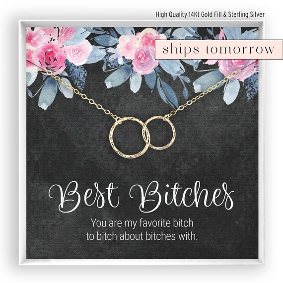Best Bitches Gift Best Bitches Necklace Friendship Jewelry Sorority Gift Funny Quotes Message Card In 14kt Gold Filled Rose Silver