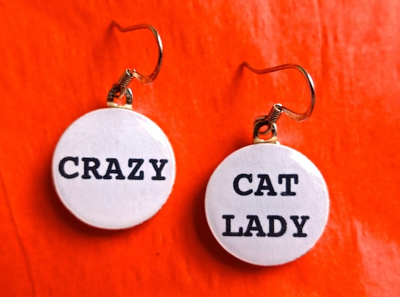Crazy Cat Lady Cat Earrings Cat Jewelry Quote Jewelry Quote Earrings Funny Earrings Word Jewelry Word Earrings Humorous Earrings