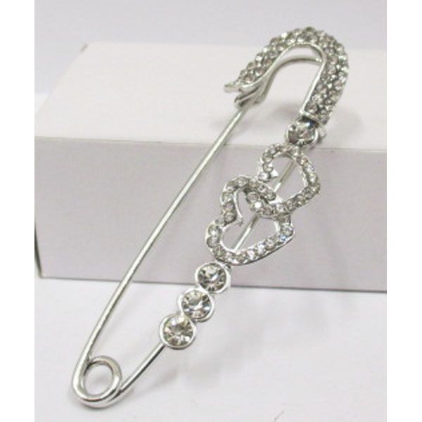 Odette Safety Pin Movement Rhodium Plated Large Safety Pin Jewelry Unique Punk Chic Brooch Style Pin Catch Scarf Or Lapel Candy Cane Shape