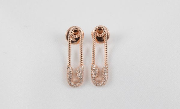 18ct White Gold Pave Diamond Safety Pin Earring Left