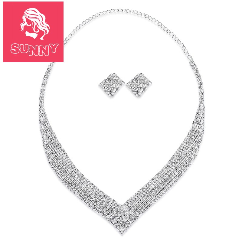 2018 Bling Crystal Bridal Jewelry Set Silver Plated Necklace Diamond Earrings Wedding Jewellery Sets For Bride Bridesmaids Women Accessories